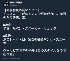 私、暇な大学職員(@univadm)は、大学職員のメリットをTwitterで発信しています。
